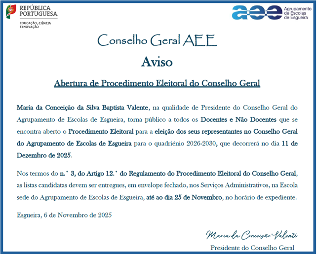 Eleição dos Elementos do Conselho Geral do Agrupamento de Escolas de Esgueira